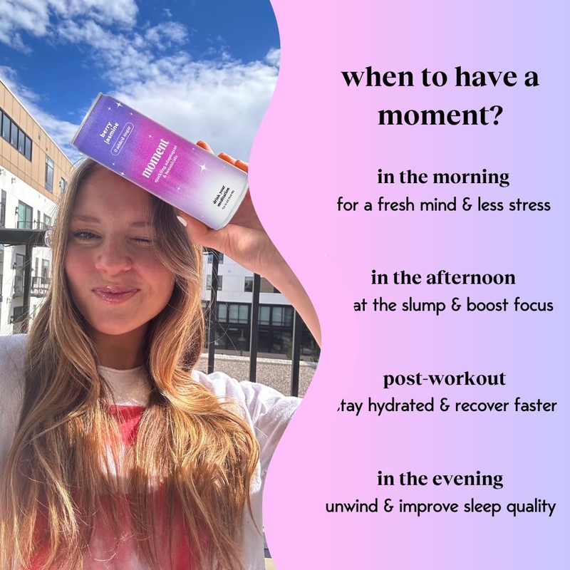 - ENJOY ANYTIME, ANYWHERE: This versatile carbonated water is perfect for any moment—whether you need a midday pick-me-up, post-workout hydration, or a relaxing drink to unwind in the evening. Moment sparkling flavored water balances cortisol levels and boosts brain function naturally.