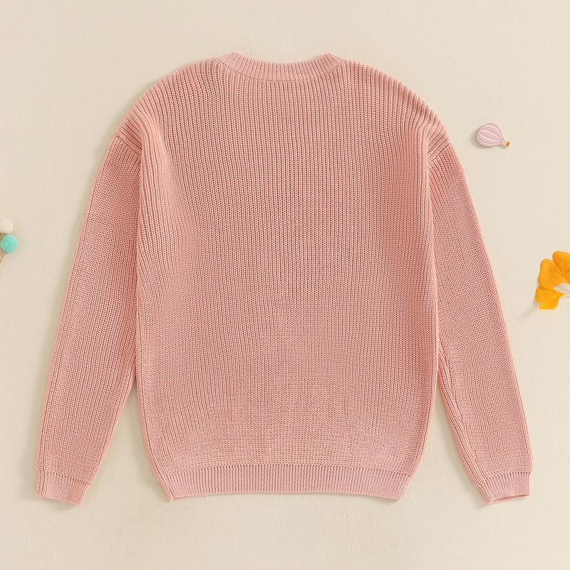 Mommy and Me Family Matching Sweaters Letter Embroidery Long Sleeve Round Neck Knitwear Fall Winter Warm Tops (Mom, M, Light Pink)