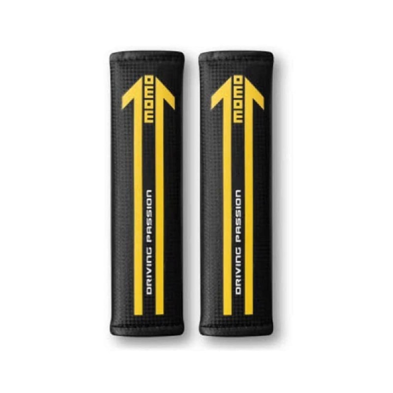 - Design: MOMO car seat belt protector in matte black to give your car a sporty touch. These are pads that feature the MOMO logo in yellow with vertical elongated arrow, creating a very original and striking contrast between these two colours. It also includes the set Driving Passion in white color. If you choose these MOMO belt covers, your car will look even more attractive