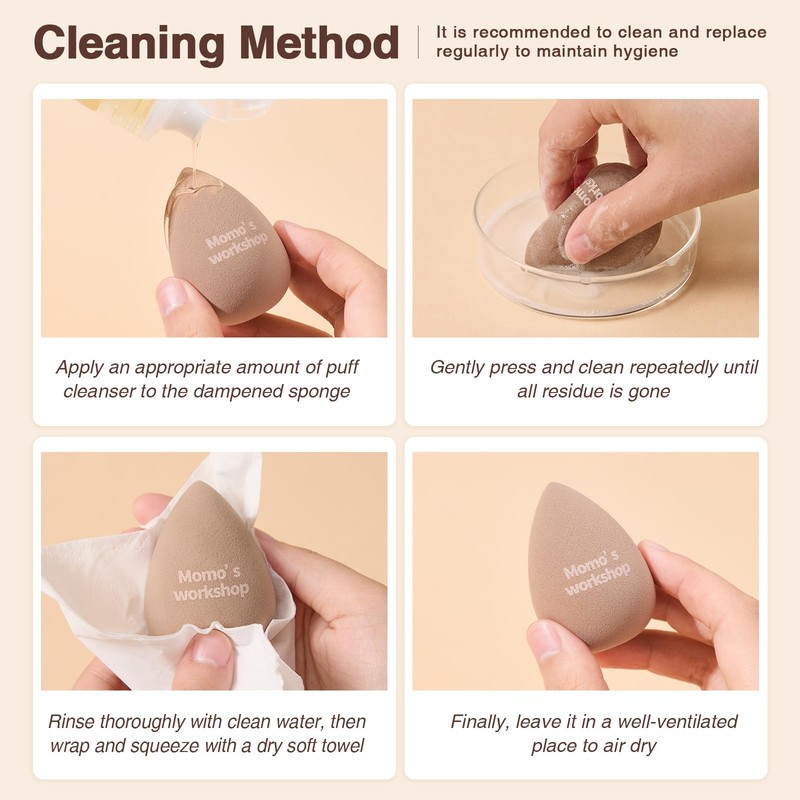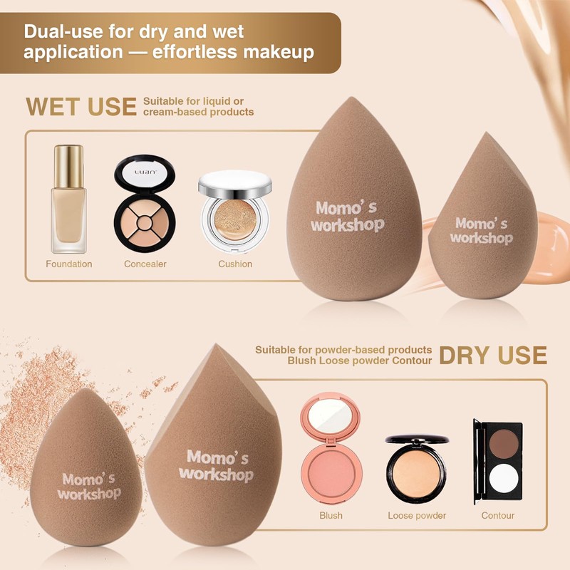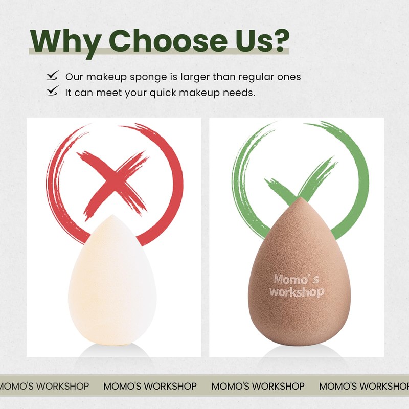 Momo's Workshop 4pcs Makeup Sponges,Face Sponge for Foundation & Concealer, Makeup on Details Targeted, Travel Friendly & Reusable