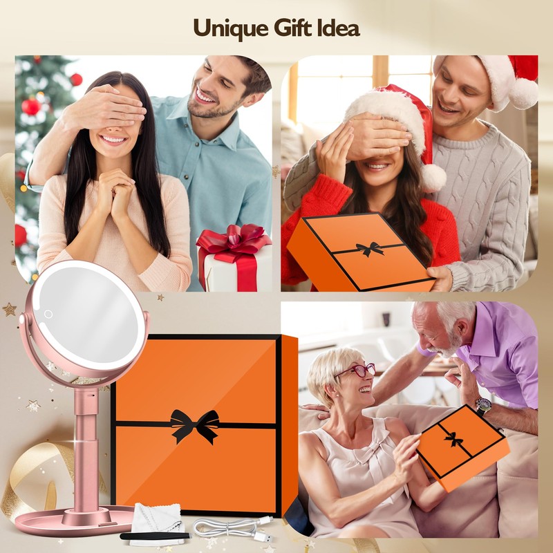 - Ideal Gift for Every Beauty Enthusiast: Packaged in an exquisite gift box, our lighted makeup mirror is ready to gift—no extra packaging needed, making gifting easy. Inside are the mirror, plus eyebrow tweezers and a charging cable—adding practicality. It’s ideal for makeup lovers, seniors needing clear magnification, or cataract patients seeking better visibility. Easy to use daily, while traveling, or at the vanity, it’s a thoughtful choice for birthdays, Mother’s Day, or holidays.