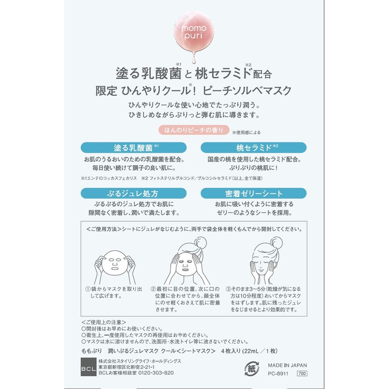 Momopuri Moisturizing Jelly Mask Cool Face Mask 4 Sheets (x1)