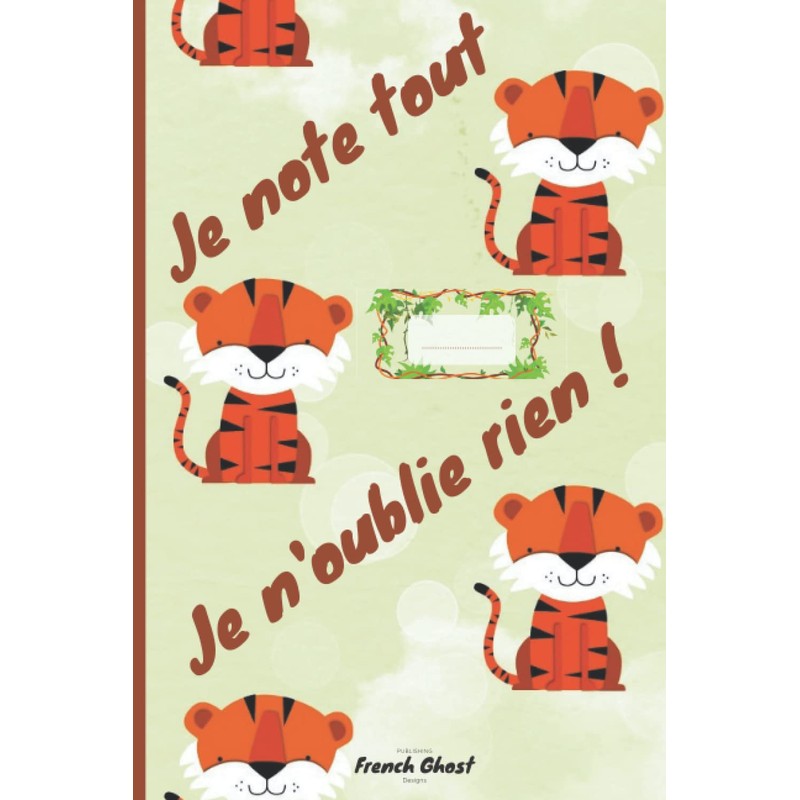 Mon premier carnet de note avec des tigres | 100 pages vierges avec des lignes pour écrire | Format 15,24x22,86 cm: Un livre conçu par French Ghost | cahier d'écriture parfait pour la maison | Je note tout, je n'oublie rien !