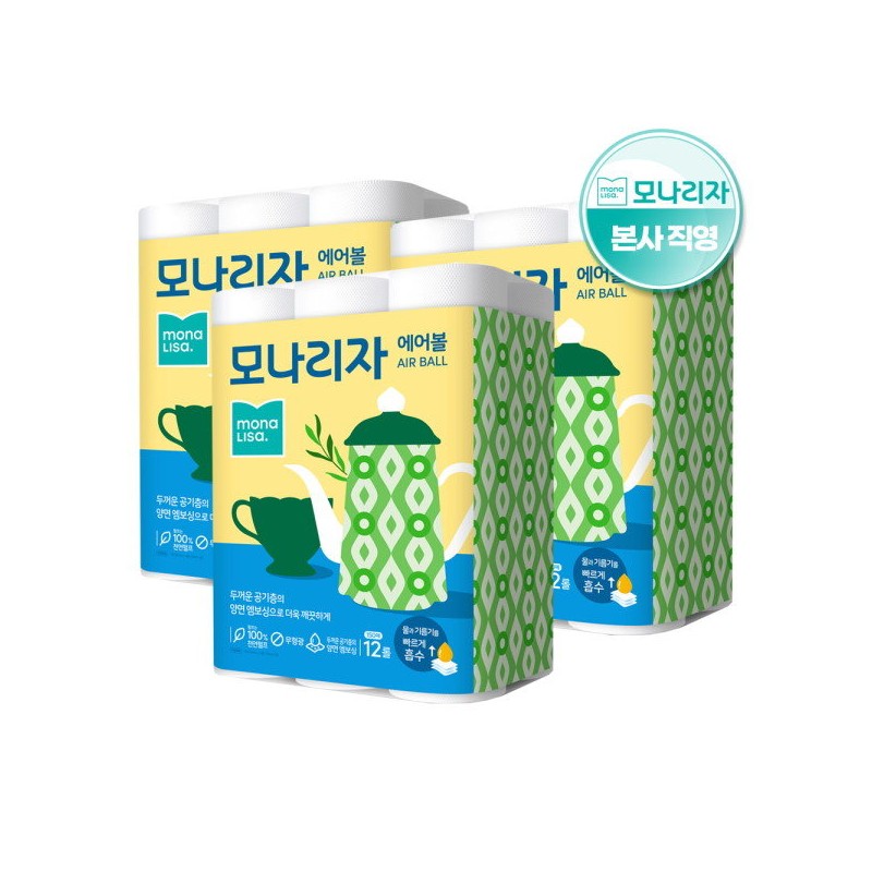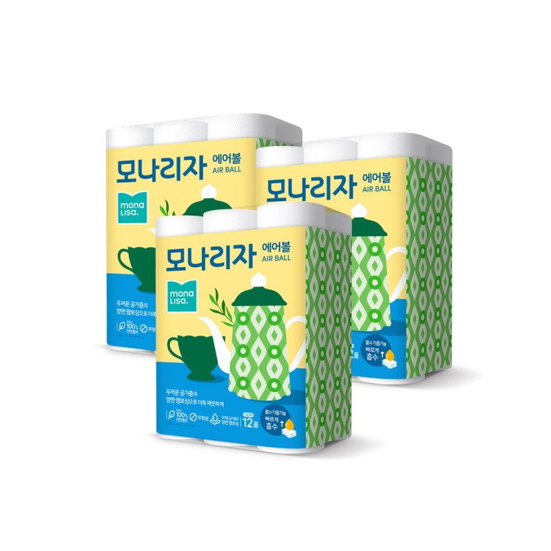 Mona Lisa Airball Kitchen Towel 150 sheets, 12 rolls, 3 packs / 모나리자 에어볼 키친타올 150매 12롤 3팩