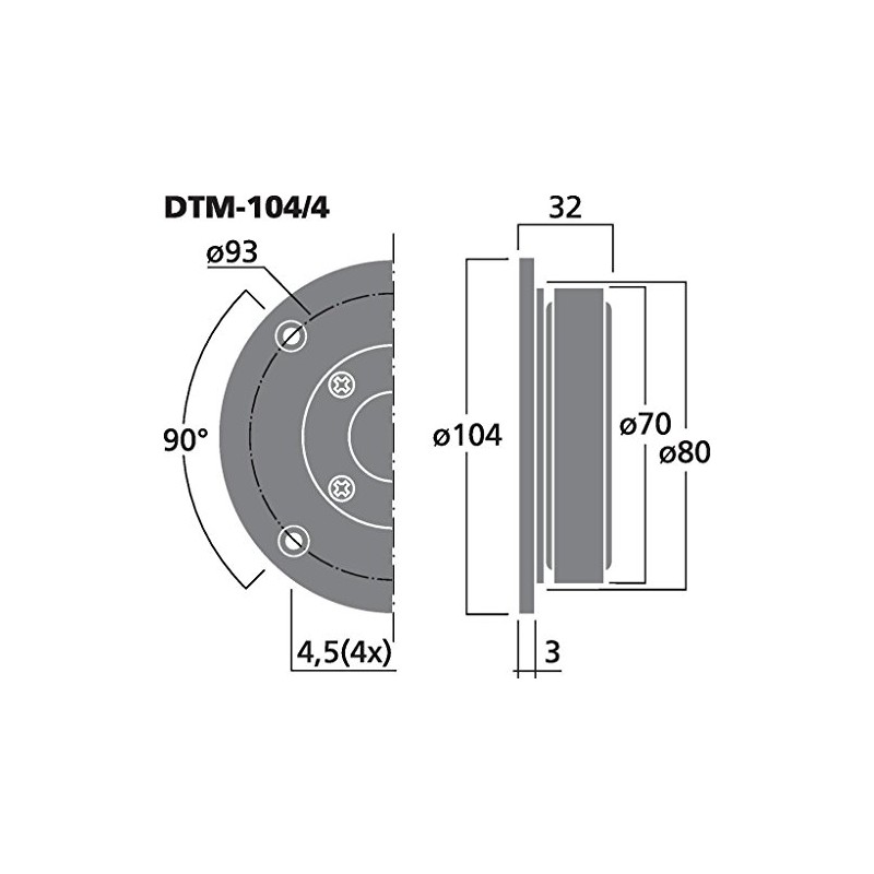 Monacor 4Ohm 100 WMAX 45 WRMS Hi-Fi Dome Tweeter