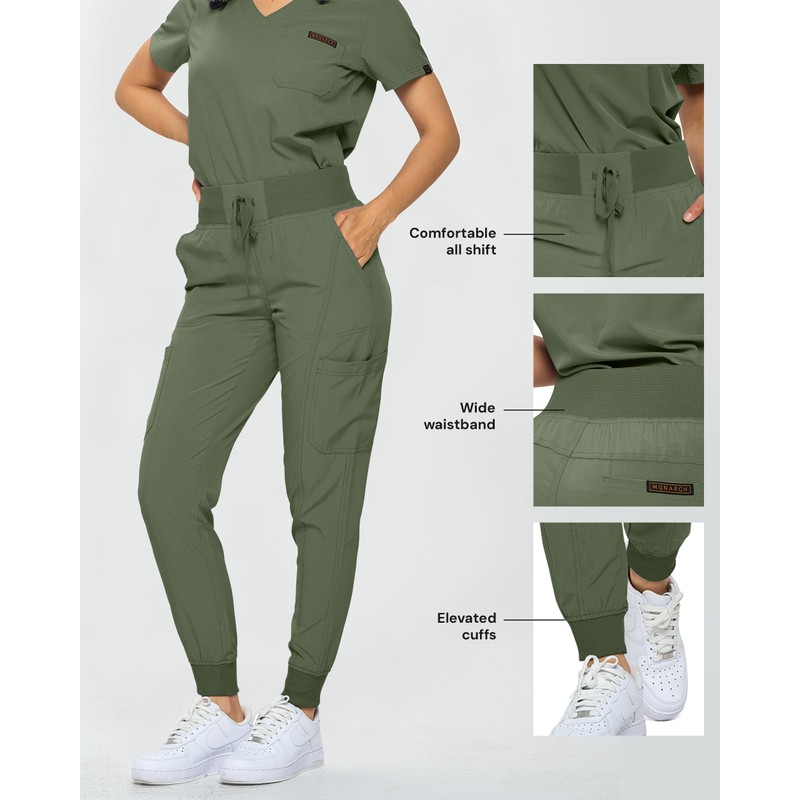 Monarch Uniforms Slim Fit Stretchy Scrubs Women's Jogger Scrub Set Slim Jogger Scrubs with Tuck-In Top for Women (OLIVE-M)
