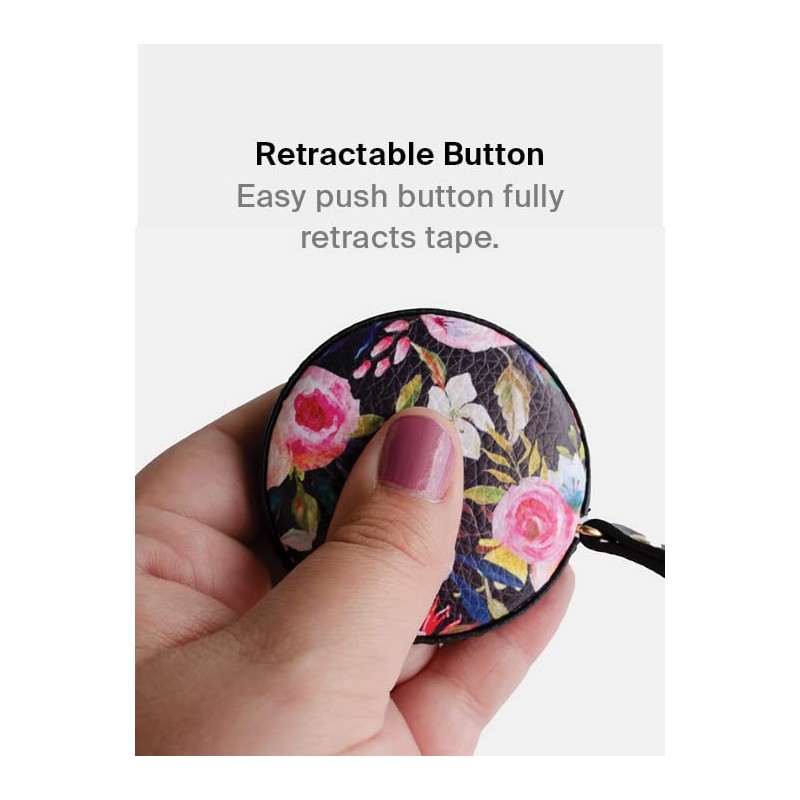 - Each one features a duel sided tape, measures up to 60 inches (150 centimeters), sturdy pull tab, easy push retractable button, and vegan leather texture.