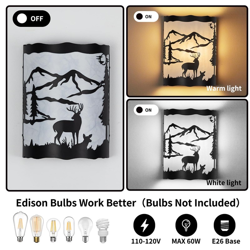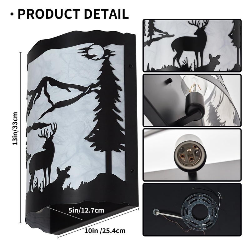 - Rustic Deer Design: This wall sconce features a metal frame with intricate deer-shaped cutouts, creating a striking and unique design. The lampshade is made of parchment, adding a warm and rustic ambiance to any room