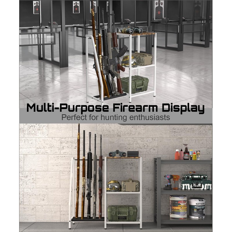 - Versatile Display: This multi-functional standing rifle storage rack keeps your space organized without occupying much room. Perfect for various settings including indoor garages, firearm storage facilities, outdoor shooting ranges, and hunting grounds, it provides neat storage and easy access for your firearms and accessories