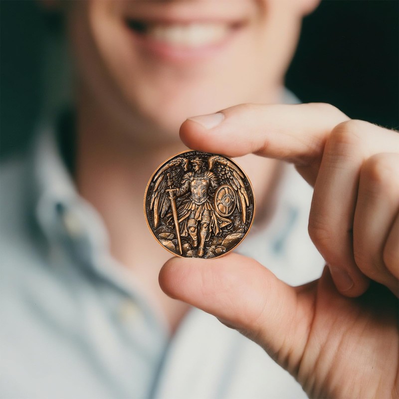 Moneda de protección de arcángel de San Miguel, aleación de zinc de doble cara de 1.57 pulgadas, coleccionable con acabado antiguo, con moneda de reto cristiano de San Miguel