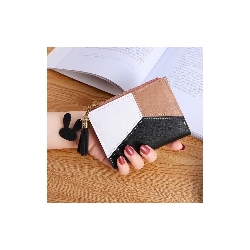 2. versatilidad, espacio de billetera pequeño y razonable, se pueden guardar 5 tarjetas, una posición de billetes grandes, una posición de foto, una bolsa de cremallera exterior (se pueden poner monedas, cambio, etc.) de manera ordenada.