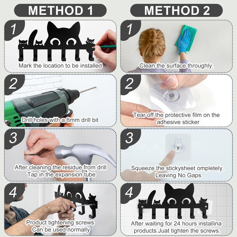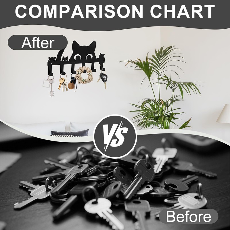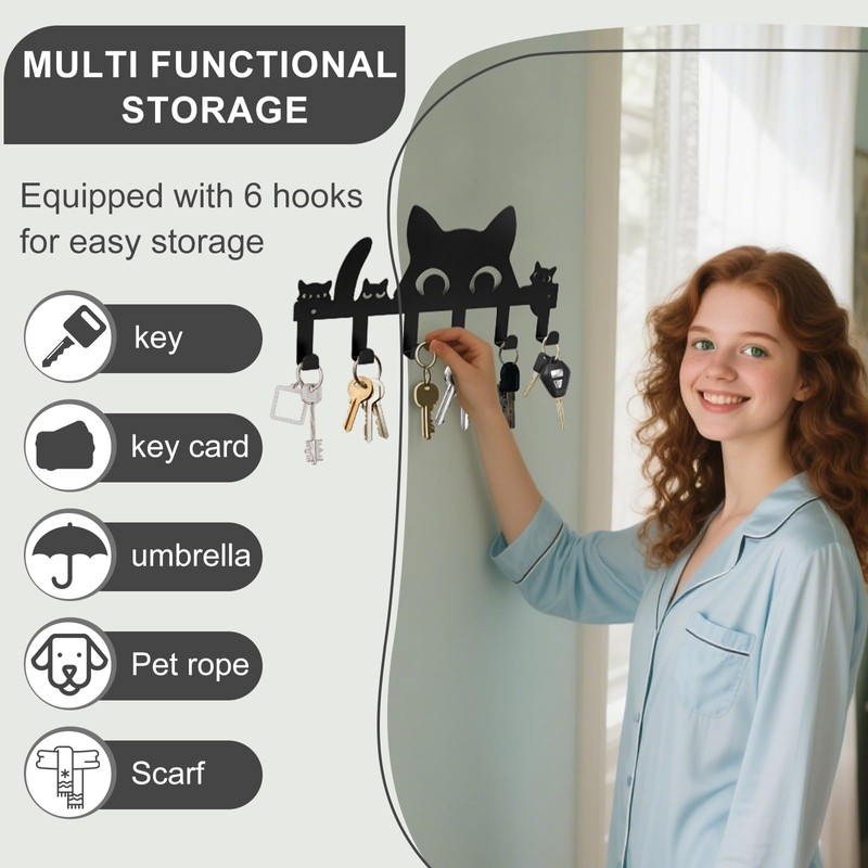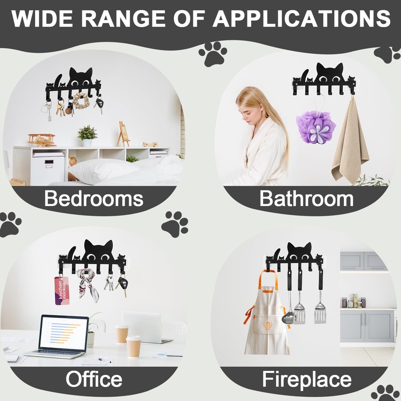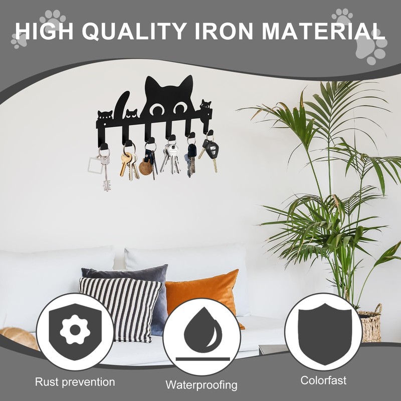 - Schlüsselbrett MATERIAL - Hergestellt aus hochwertigem Eisenmaterial mit einer mattschwarzen Oberfläche für zusätzliche Haltbarkeit, Rost, Wasser, Verblassen und Fleckenbeständigkeit.Diese schwarzen Kätzchen-Schlüsselhaken haben ein einzigartiges Design, einfach und unkompliziert, und verleihen Ihrem Zuhause einen Hauch von Brillanz.