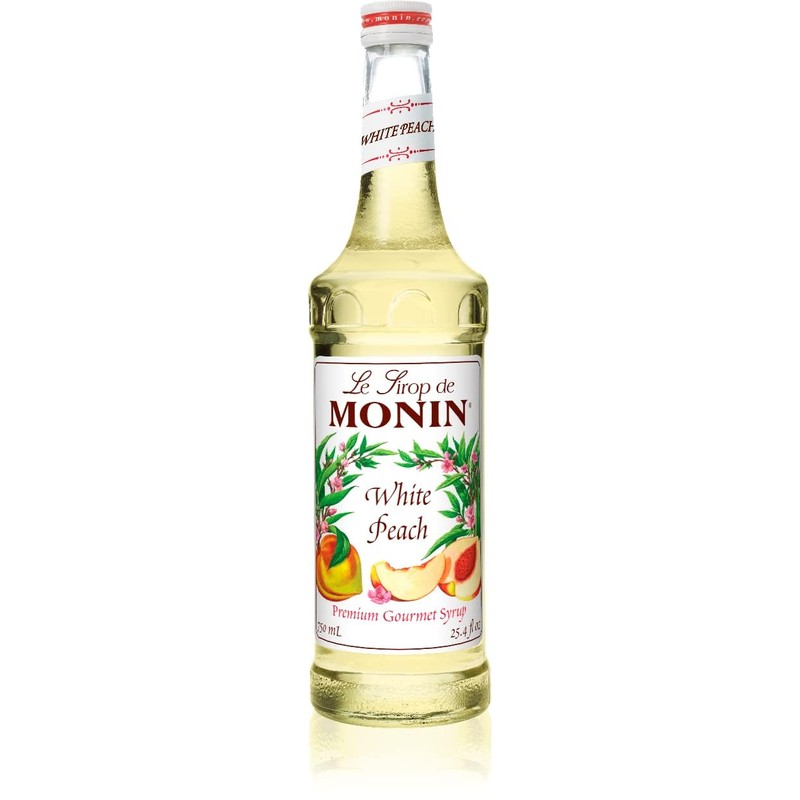 Monin - White Peach Syrup, Juicy Ripe Peach Flavor, Perfect for Cocktails, Mocktails, Iced Teas, & Smoothies, Gluten-Free, Non-GMO (750 ml)