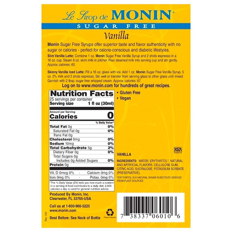 Monin - Sugar Free Vanilla Syrup, Bold Vanilla Bean Flavor, Great for Coffee, Cocktails, & Lattes, Gluten-Free, Non-GMO (750 ml)