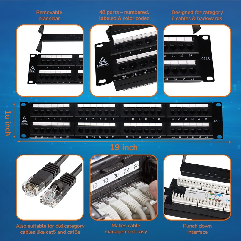 MONK CABLES | CAT6 Patch Panel | Puchdown | 48 Port