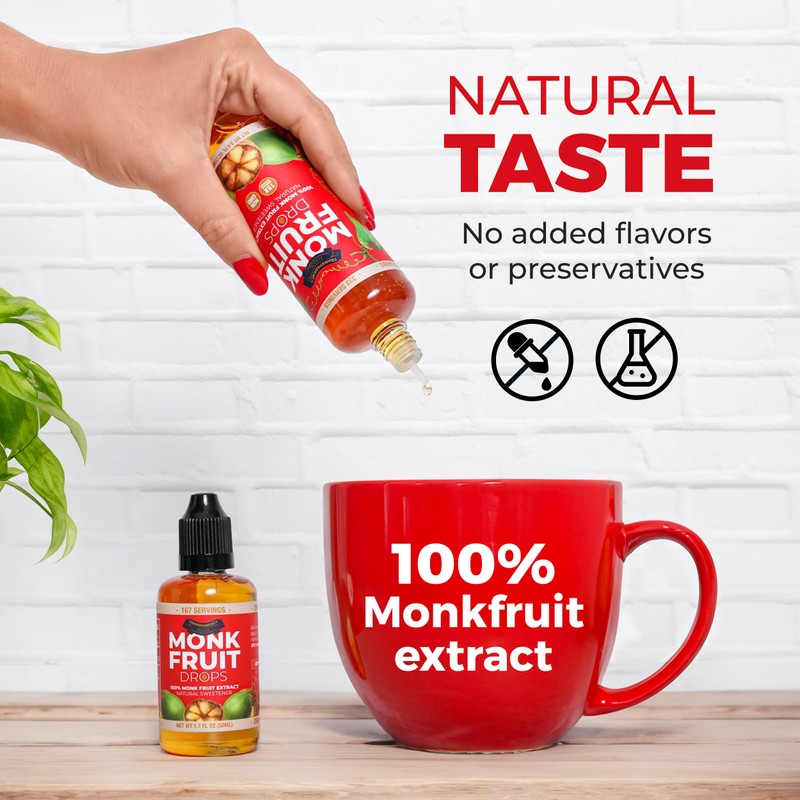 Monk Fruit Extract (6 Drops = 1 Tsp of Sugar) Zero Calories, Non-GMO, No Fill...
