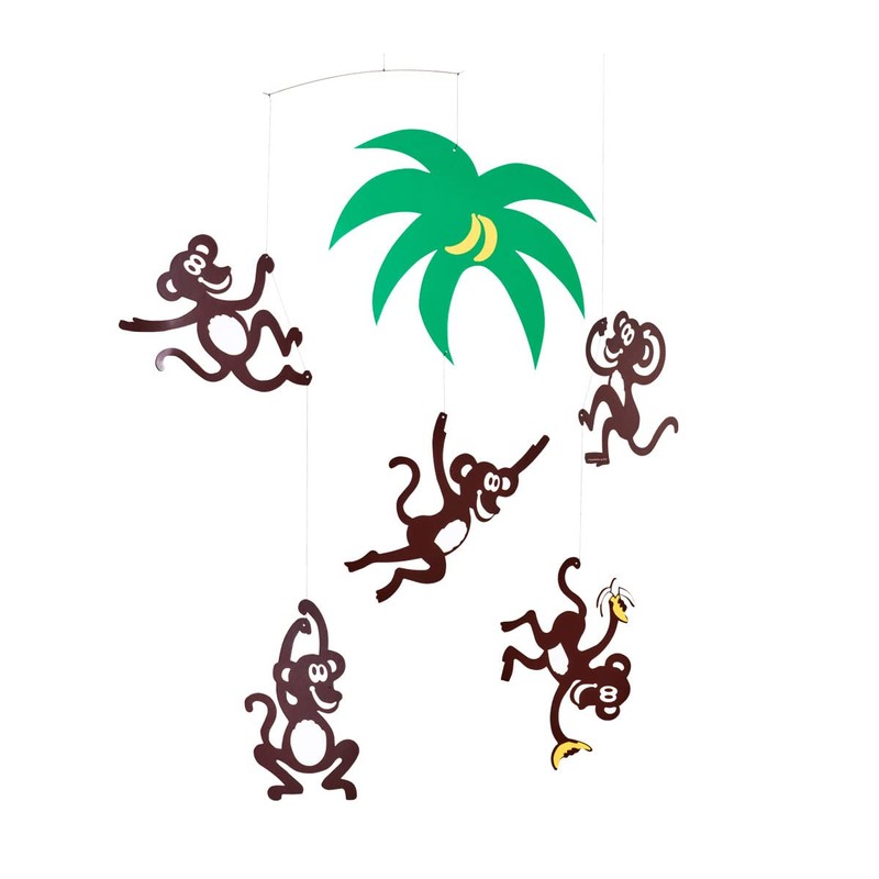 • These playful monkeys hang down from a palm tree. The mobile is full of life and fun - a lovely gift for children.