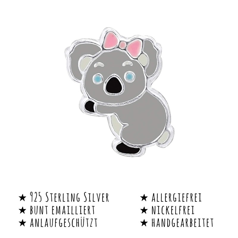 - Magic a smile on your face. The grey enamelled koala bear stud earrings with the beautiful bow are a real eye-catcher.