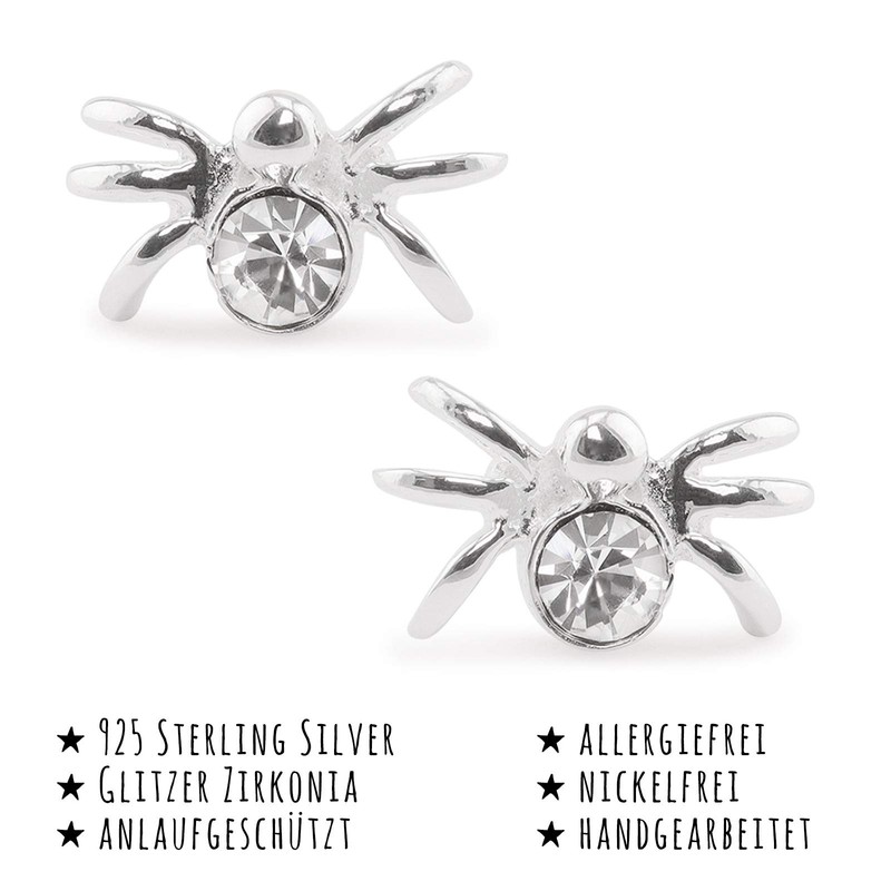 Monkimau Women's Spider Stud Earrings 925 Sterling Silver with Crystals, Silver