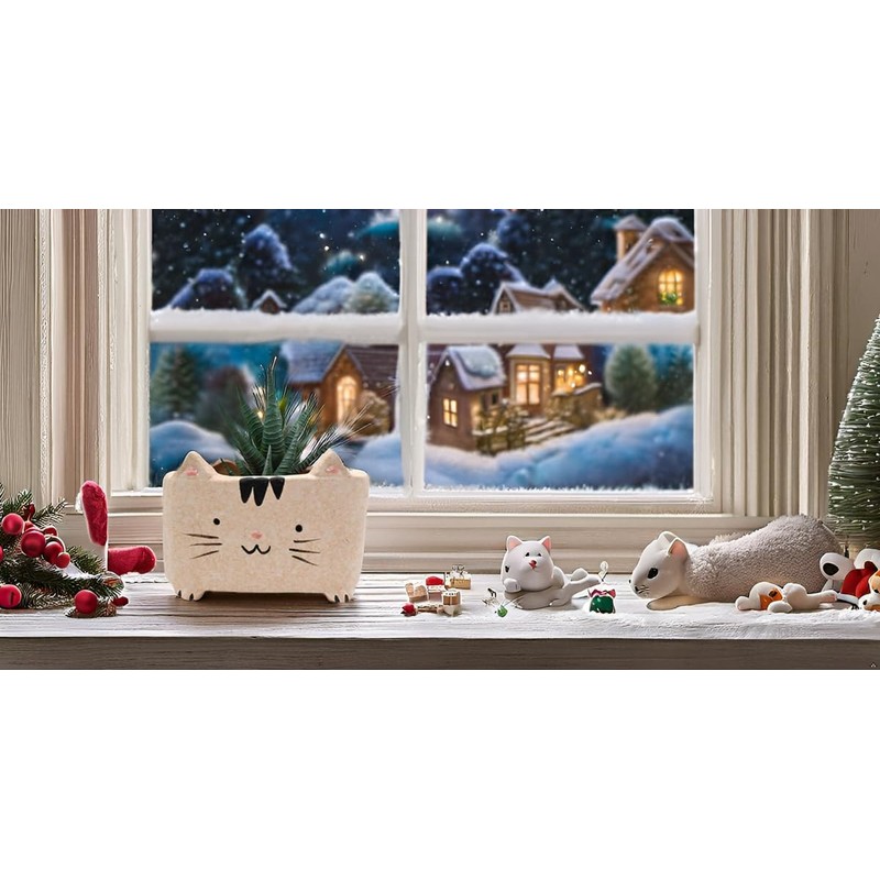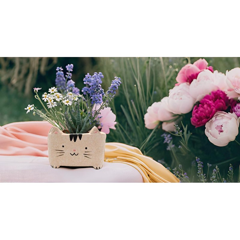 MONMOB Ceramic Cat Planter Cute Kitty Planter Pot Cat Succulent Pot