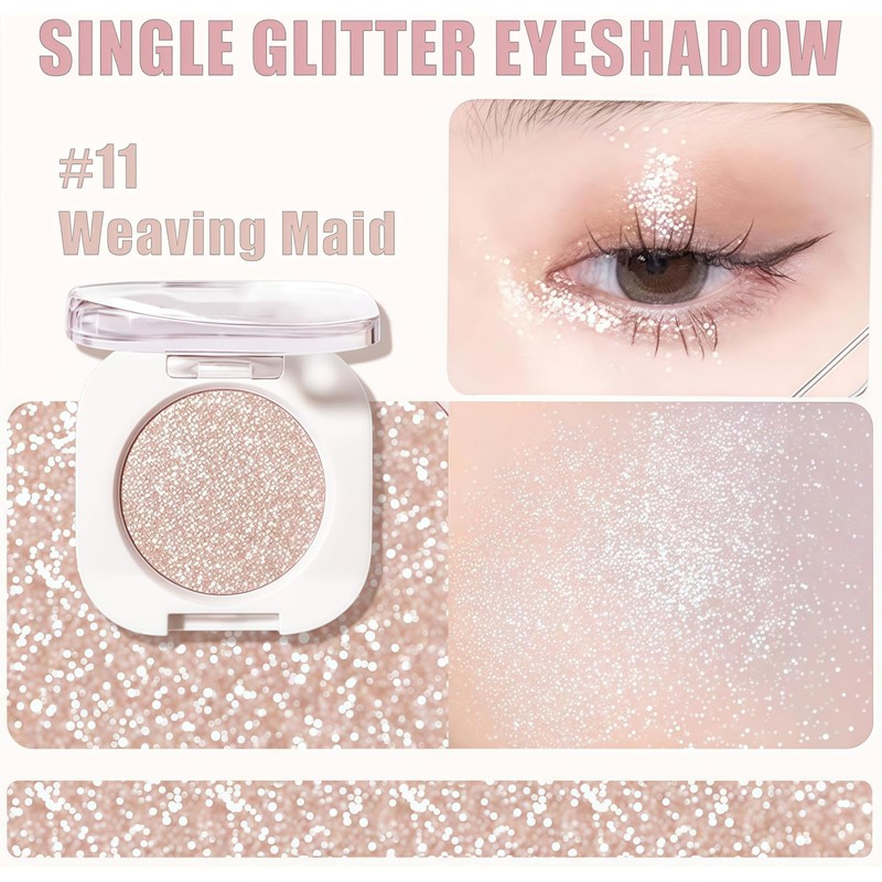 - WATERPROOF AND LONG-LASTING:The shimmer eyeshadow contains slightly brightening ingredients that can brighten the eyes, enhance the three-dimensional effect of the eyes and present a three-dimensional luster. Depending on the technology used, this silver eyeshadow can present a matte satin finish or a high-profile metallic texture. The lightweight texture of this glitter eyeshadow palette prevents eye wrinkles from getting stuck and it lasts for over 8 hours. This eye glitter is waterproof, so it won't smudge easily even during exercise or in the rain. The single eyeshadow adopts a high-density pressing process to reduce the splashing of glitter and keep the makeup clean