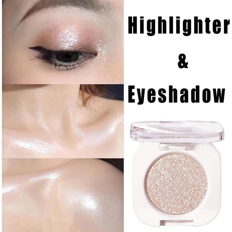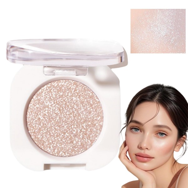 Monochrome Glitter Eyeshadow,White Eyeshadow Single,Shimmer Shadow for Eye Make-Up,Prime Eyes Brightener Eye Shadow,White Highlighter Makeup,Long-Lasting Waterproof,Multi-Use for Eyes & Cheeks Makeup