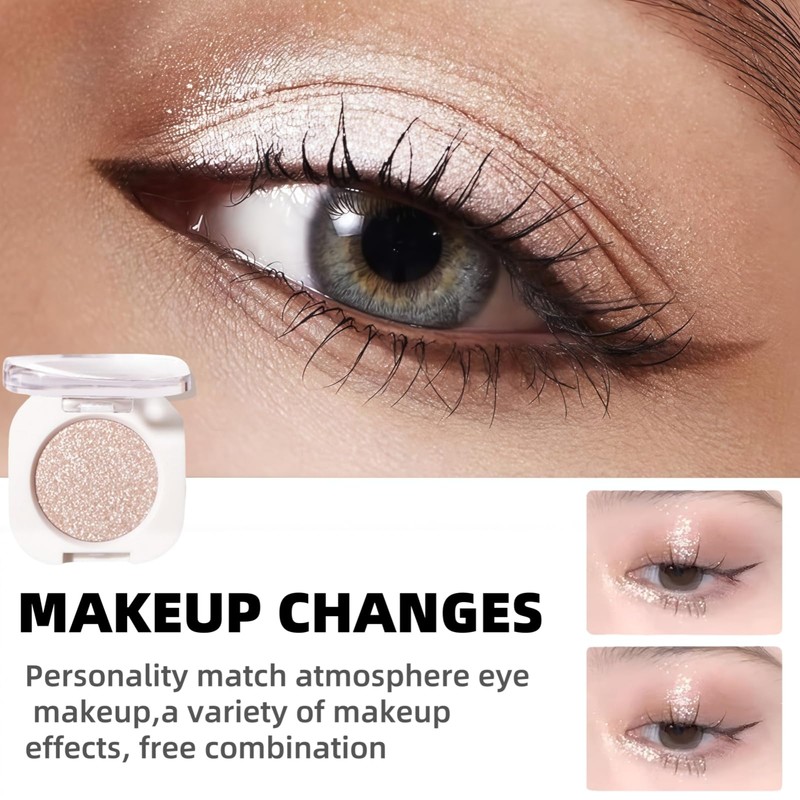 - EASY TO APPLY:This gold glitter eyeshadow is easy to apply and looks good whether used alone or in combination. The single-color design of the glitter make up allows you to avoid worrying about color matching. Even if you are in a hurry in the morning or on a business trip, you can quickly complete your eye makeup. This white eye shadow does not require professional brushes. Just gently tap with your fingertips to blend and touch up your makeup anytime and anywhere. Our white highlighter makeup can be used to brighten the eye sockets and inner corners of the eyes. Even if there is a mistake in blurring, it can still present a natural and slightly sparkling effect