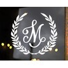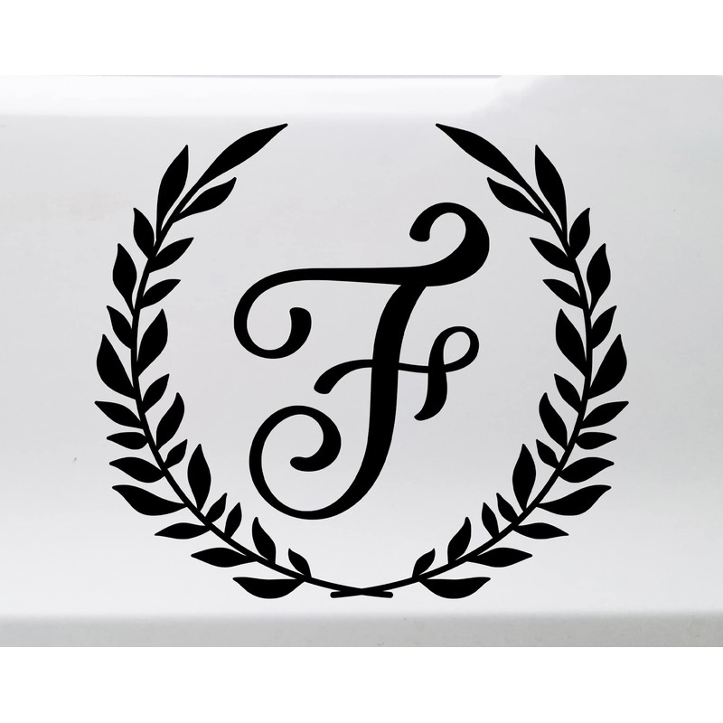Monogram Letter in Laurel Wreath Vinyl Decal - Script Scroll Family Name - Die Cut Sticker
