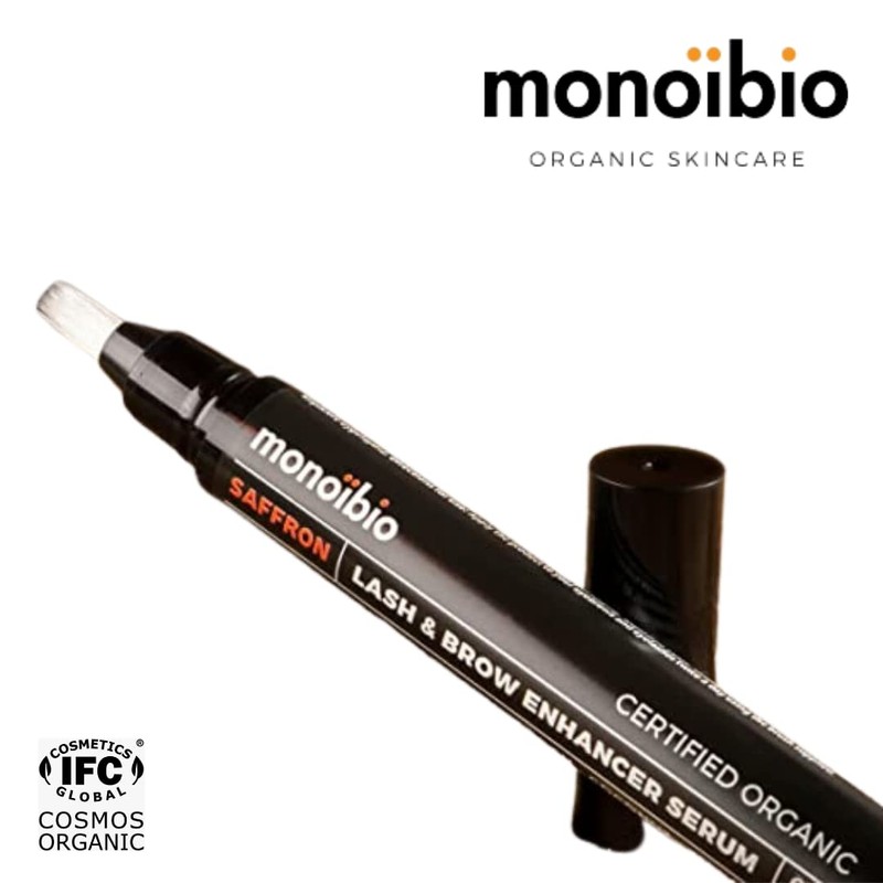 Monoibio Safron Cosmos Organic Lash Eyelash Serum & Eyebrow Serum Eyelash Booster for Long, Density and Beautiful Eyelashes, Vegan Lash & Brow Eyelash Care, 2.8 ml