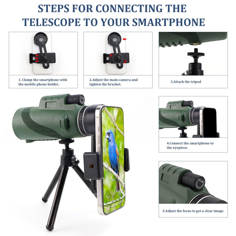 • AUFNAHME ZU JEDER ZEIT: Wir Statten Sie auch mit einem Smartphone-Halter und einem Stativ aus. Mit Unserem Monokular Fernglas können Sie Ihr Leben Aufzeichnen und die Erstaunlichen Momente der Natur Jederzeit und Überall Festhalten.