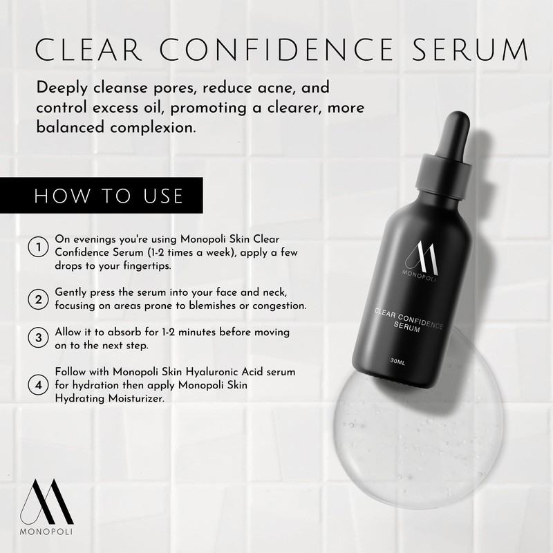 • CLEAR, CONFIDENT SKIN – Monopoli Skin’s Clear Confidence Kit is your ultimate solution for a smooth, blemish-free complexion. This 3-piece skincare set features a powerful combination of Clear Confidence Serum, BHA Clearing Mask, and Exfoliating Facial Pads, designed to target breakouts, minimize pores, and improve skin texture, helping you achieve the clear, confident skin you deserve.