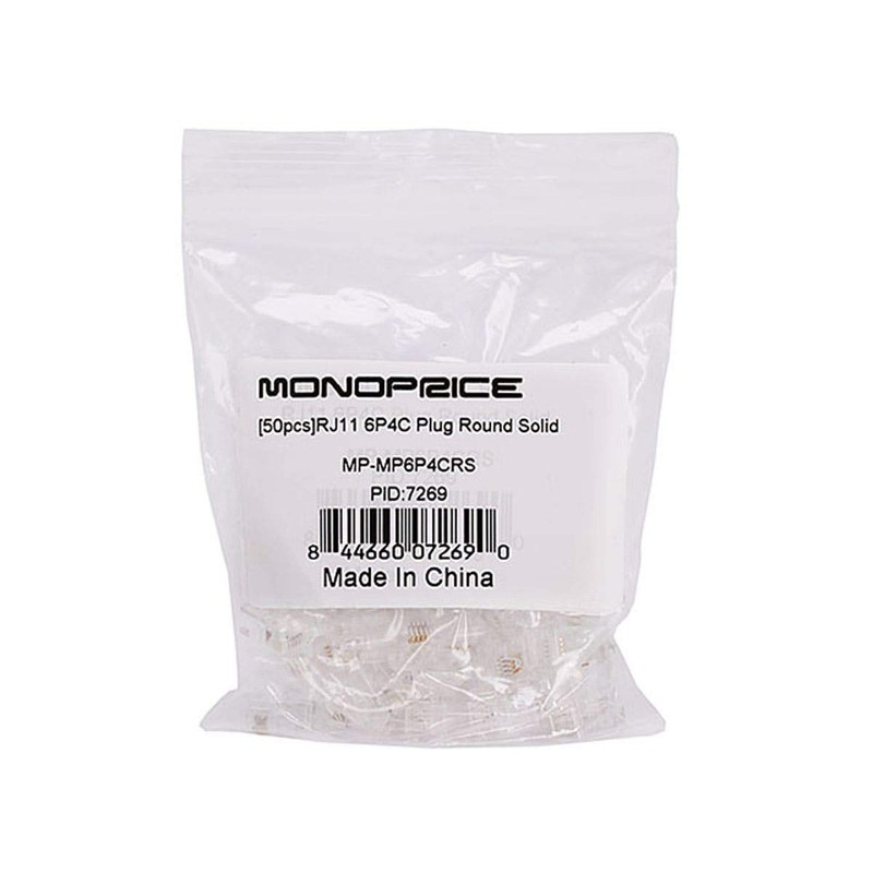 Monoprice RJ11 6P4C Plug Round Solid, 50-Piece/Bag (107269)