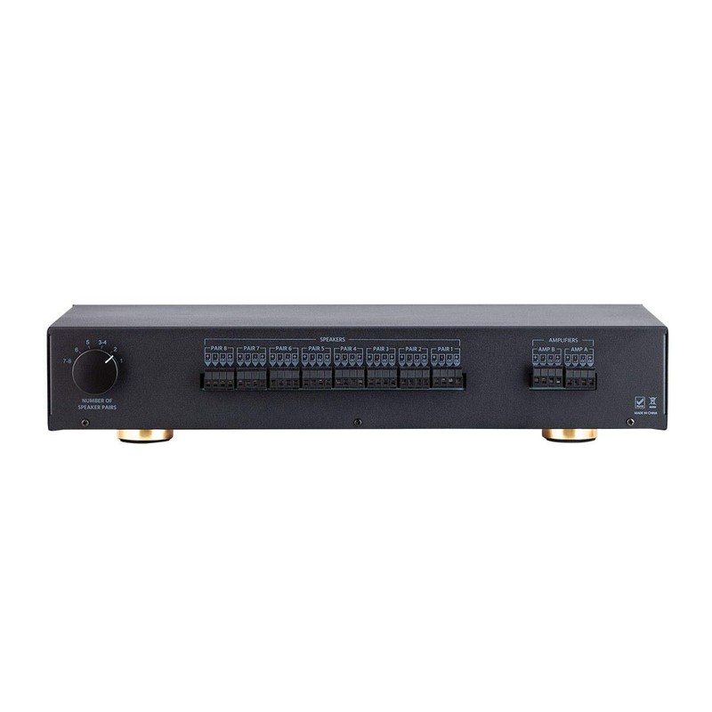 - 8-Zone speaker selector that allows you to connect up to 8 pairs of speakers or 8 listening zones and control each zone with front panel push-buttons.