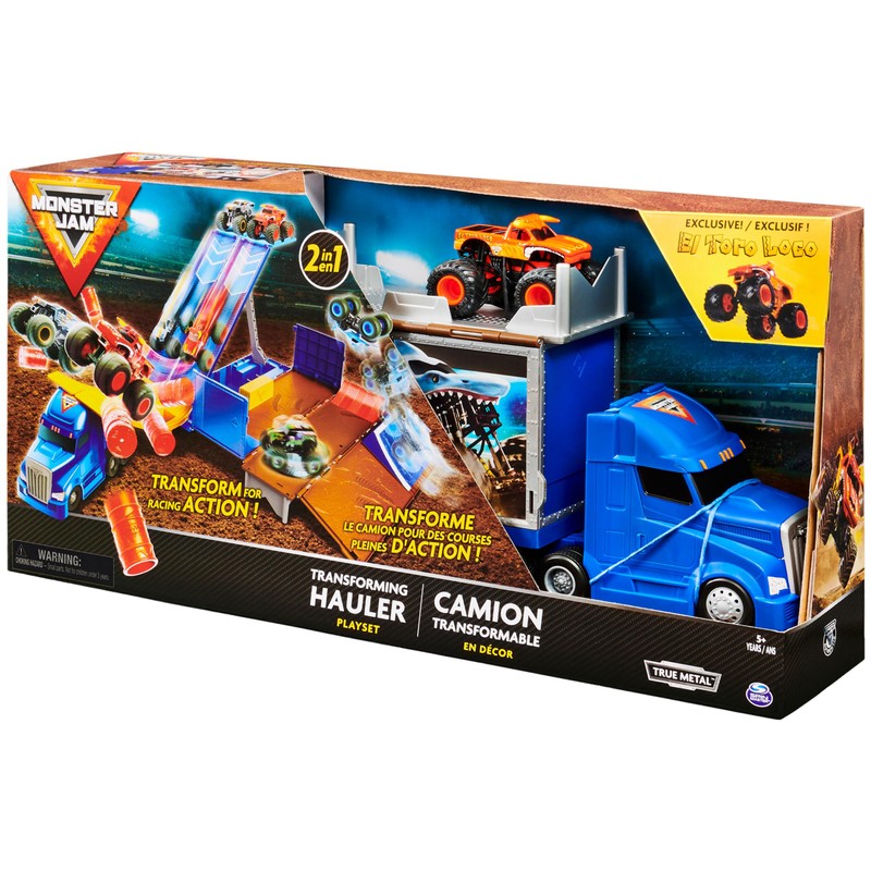 - The Monster Jam Transforming Hauler Playset is a great gift for kids aged 3 and up. Transform for racing action