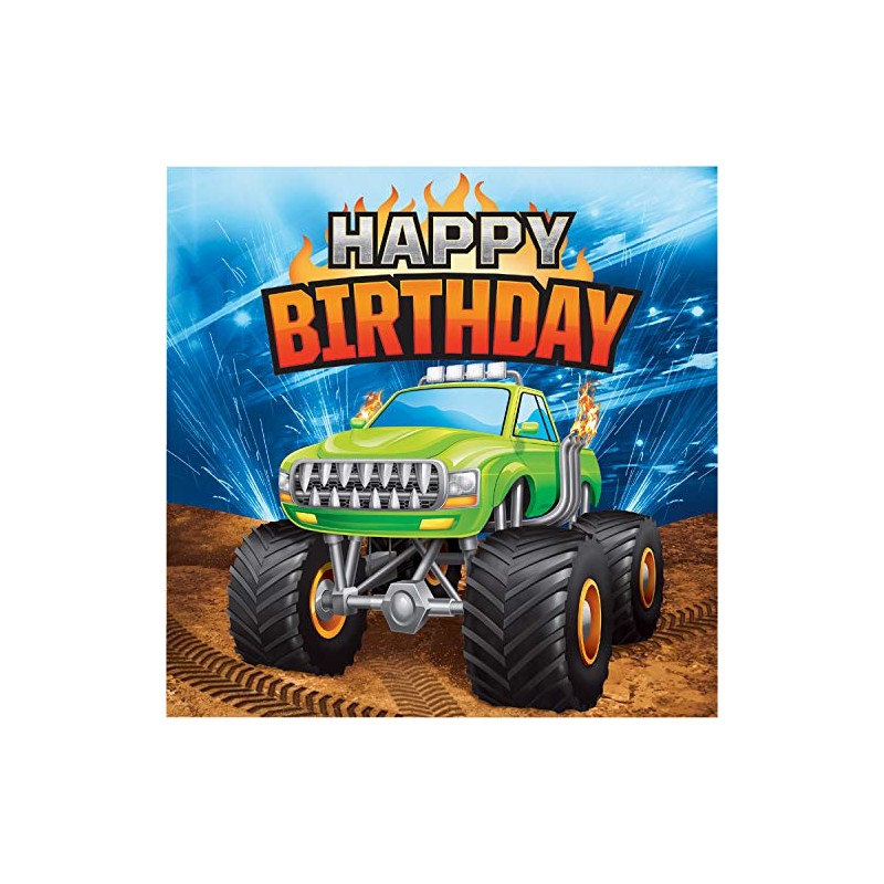 - 48 servilletas de cumpleaños con diseño de Monster Truck
