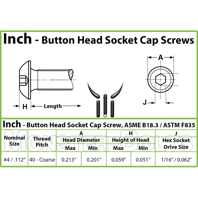 MonsterBolts - #4-40 x 1/2" Button Head Socket Cap Screws, ASME B18.3, Alloy ...