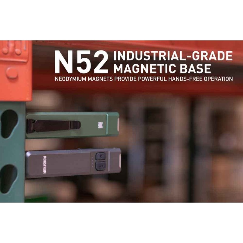 Flashlight housing is constructed of 6061 aluminum. A magnet at the rear of the flashlight allows for mounting to magnetic surfaces.
