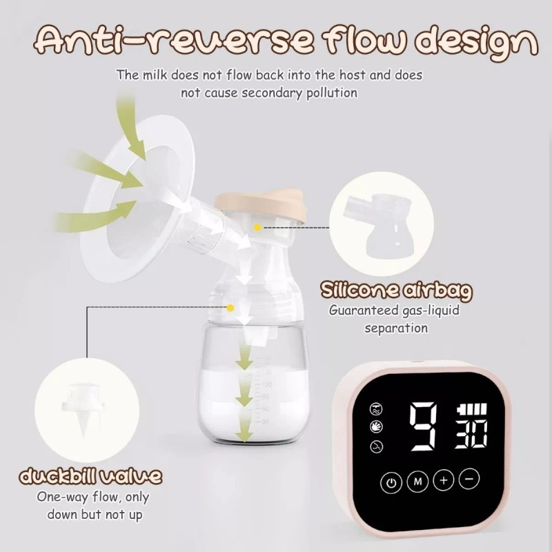 Anti-reflujo: la bolsa de aire de silicona asegura la separación de gas y líquido, la válvula de pico de pato restringe el flujo unidireccional y la leche no regresa a la unidad principal, sin causar contaminación secundaria.