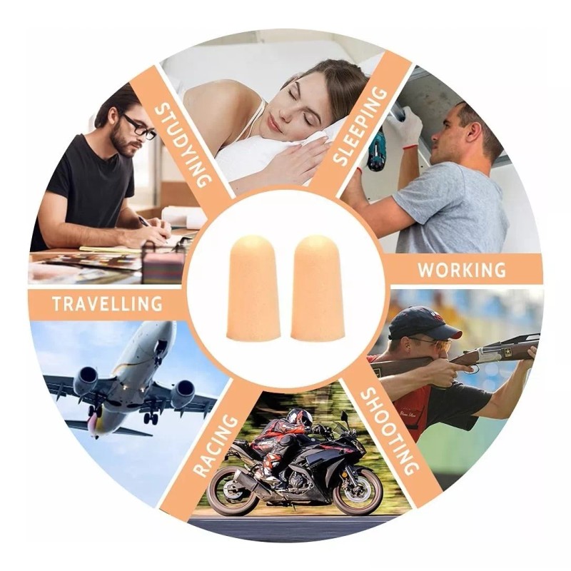 Los ruidos fuertes en el entorno, como disparos y carpintería, afectarán la audición. Los tapones para los oídos de espuma suave brindan comodidad y protección contra el ruido de alto volumen para su audición.