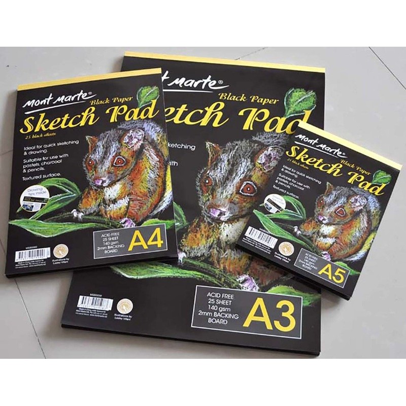 Mont Marte 140gsm Black Paper Sketch 25-Sheets Pad, A5 Size