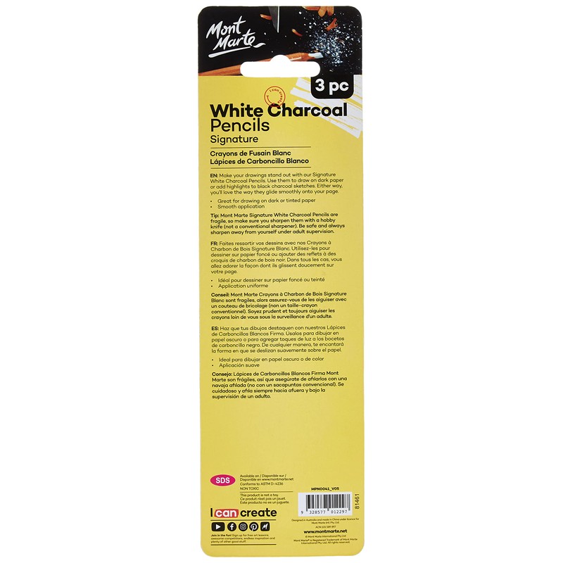Mont Marte Charcoal Pencils 3 Pieces Set, White