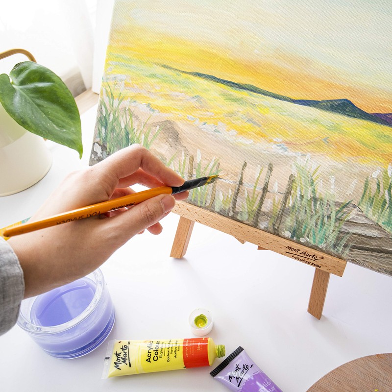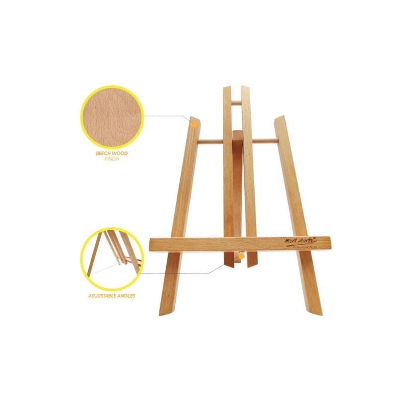 - Elegant design - The small beech wood table easel from Mont Marte is ideal for displaying pictures and canvases. It can be easily placed on a table and stored after use to save space. With this easel you get the perfect way to highlight your artwork.