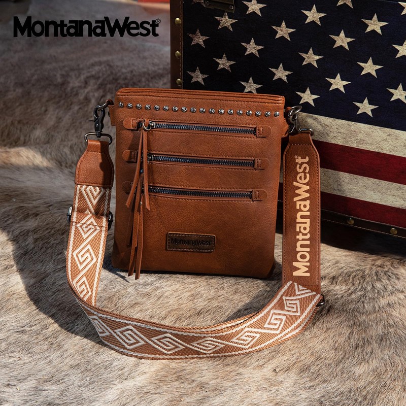 Montana West Crossbody Purses and Handbags for Women, Medium Size Double Compartments with Guitar Adjustable Strap MWC-H184DBR