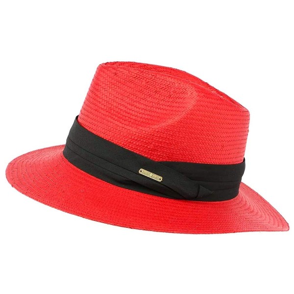 - Straw Hat for Men and Women Red with Black Belt - Panama Summer Hat Handmade Natural Straw Theo Collection Léon Montane