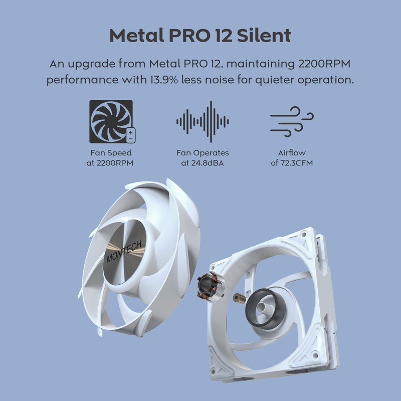 • Ultra-Quiet Cooling – Three Metal Pro 12 Silent fans (24.8dBA) ensure distraction-free performance.
