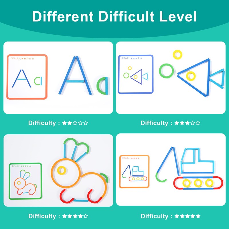 - You can build a car, a letter of the alphabet, a helicopter, a butterfly, a person, etc. With this sticks & rings puzzle, you can build anything you want.