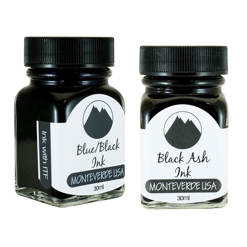 - Pack Contains the following Monteverde USA Ink Bottles: (1) Monteverde 30ml Blue/Black Ink Bottle. (1) Monteverde 30ml Black Ash Ink Bottle.
