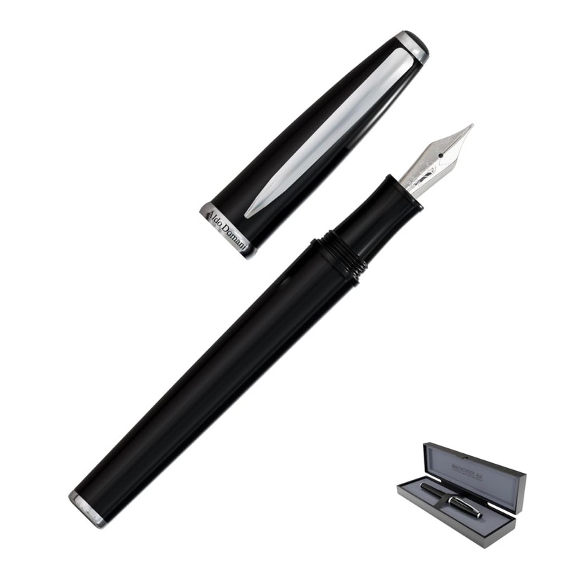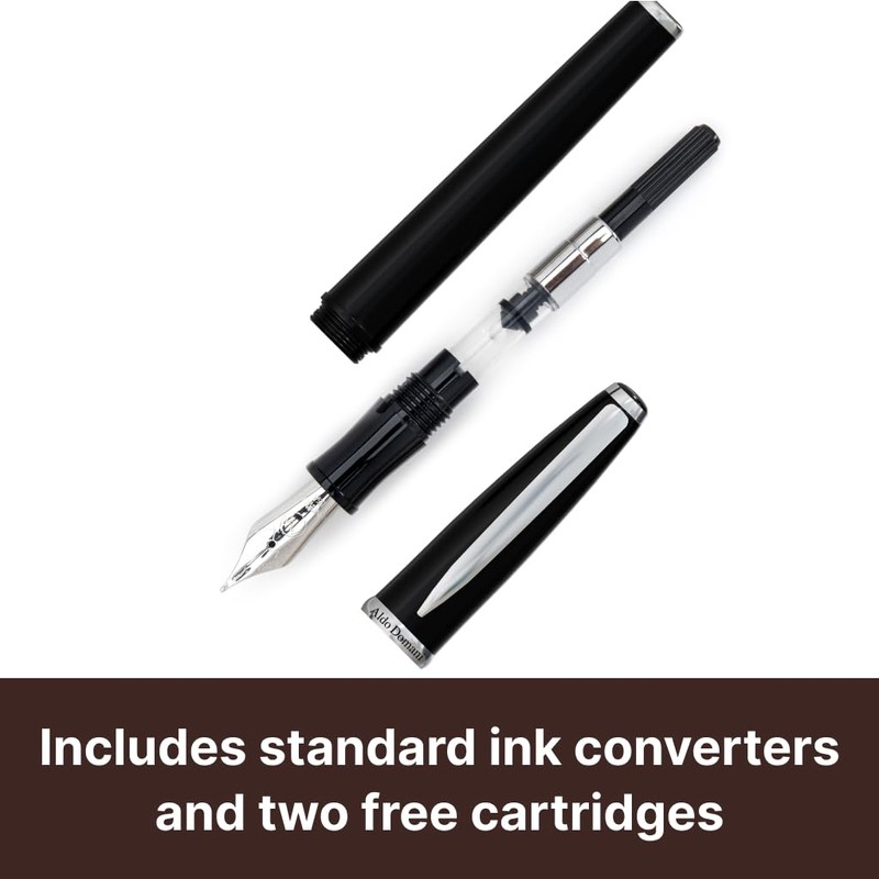 Monteverde USA Aldo Domani Fountain Pen Black – Medium Nib – Free Ink Bottle, Converter & Cartridges – Smooth JoWo German Nib – Elegant Gift Pen in Box