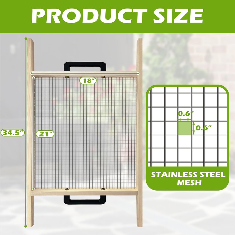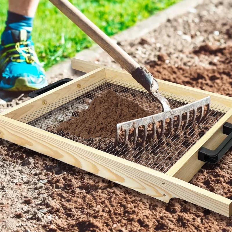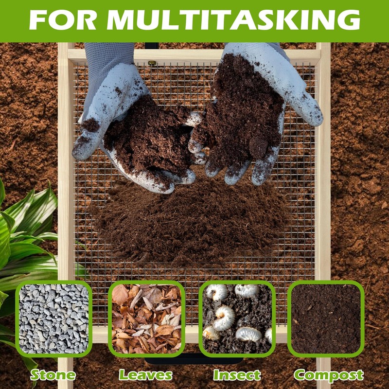 - 【Built to Last – Sturdy and Durable】Crafted with a solid wooden frame and reinforced steel mesh, this sifter is built for heavy-duty performance. Whether you're tackling tough soil or heavy compost, it's durable enough to withstand season after season of consistent use
