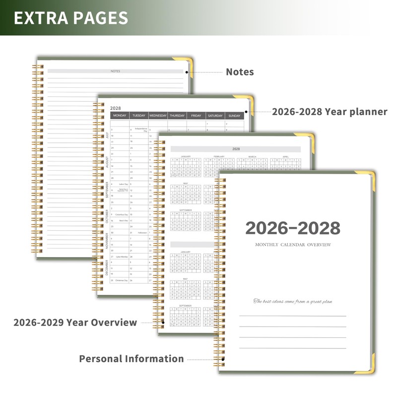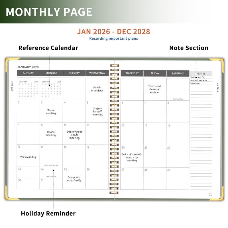 Monthly Planner 2026-2028, Dark Green